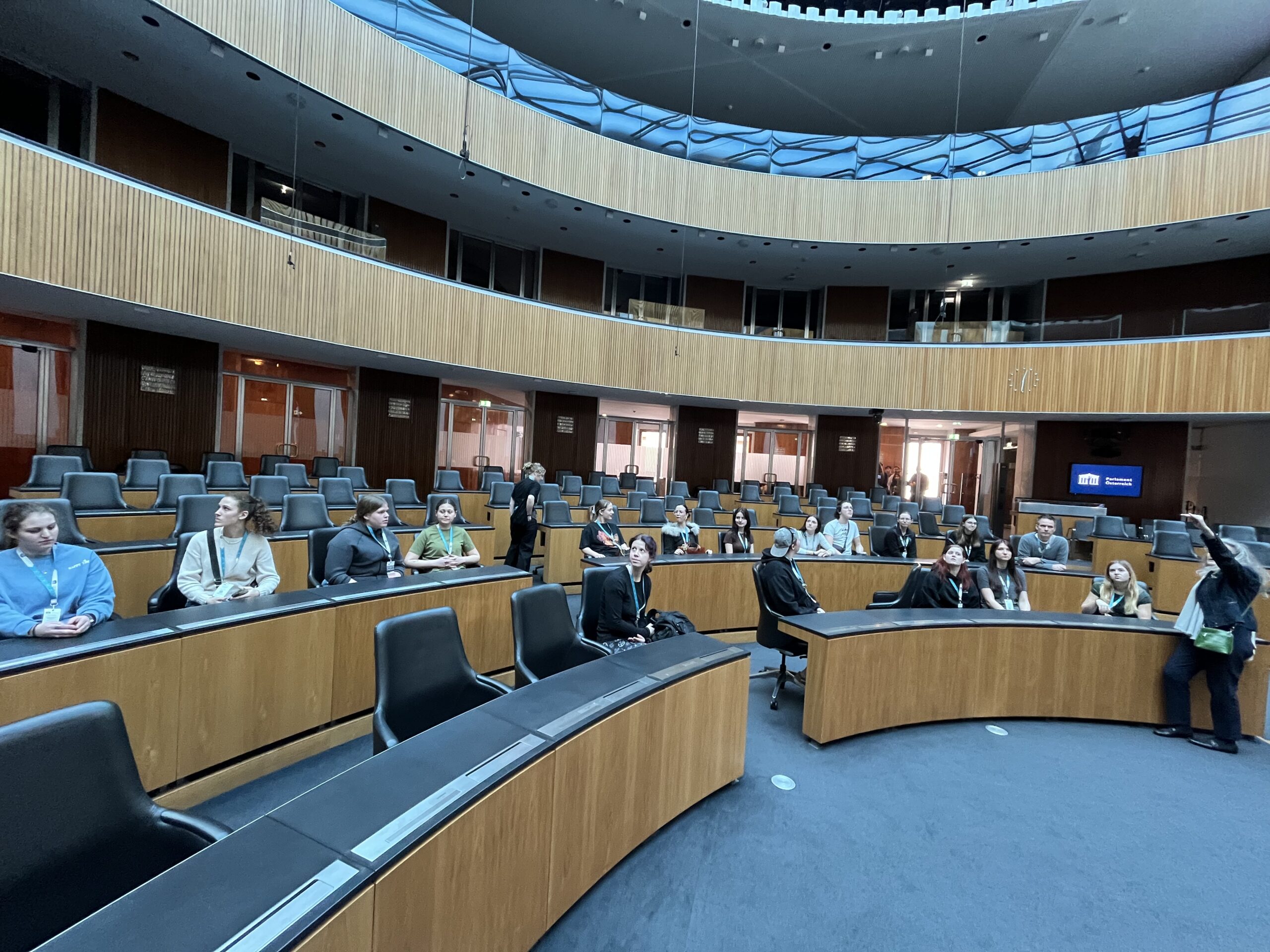 Die Klasse P4 des Norbertinums unternahm eine spannende Exkursion nach Wien. Zuerst besuchten wir das Parlament, wo wir bei einer Führung viel über Demokratie und die Arbeit der Abgeordneten erfuhren. Besonders beeindruckend war der Sitzungsaal des Nationalrates.